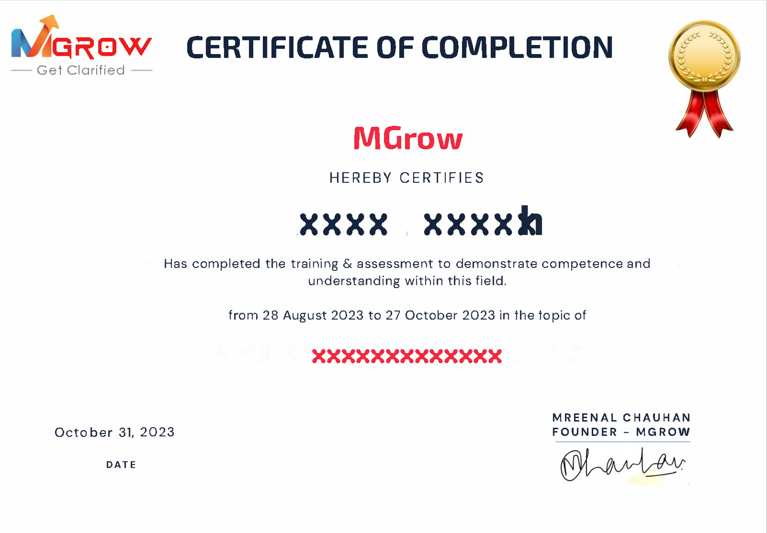 Yes, you will get an industry-recognized certificate of completion for the live and hands-on course that you opt for on MGrow.